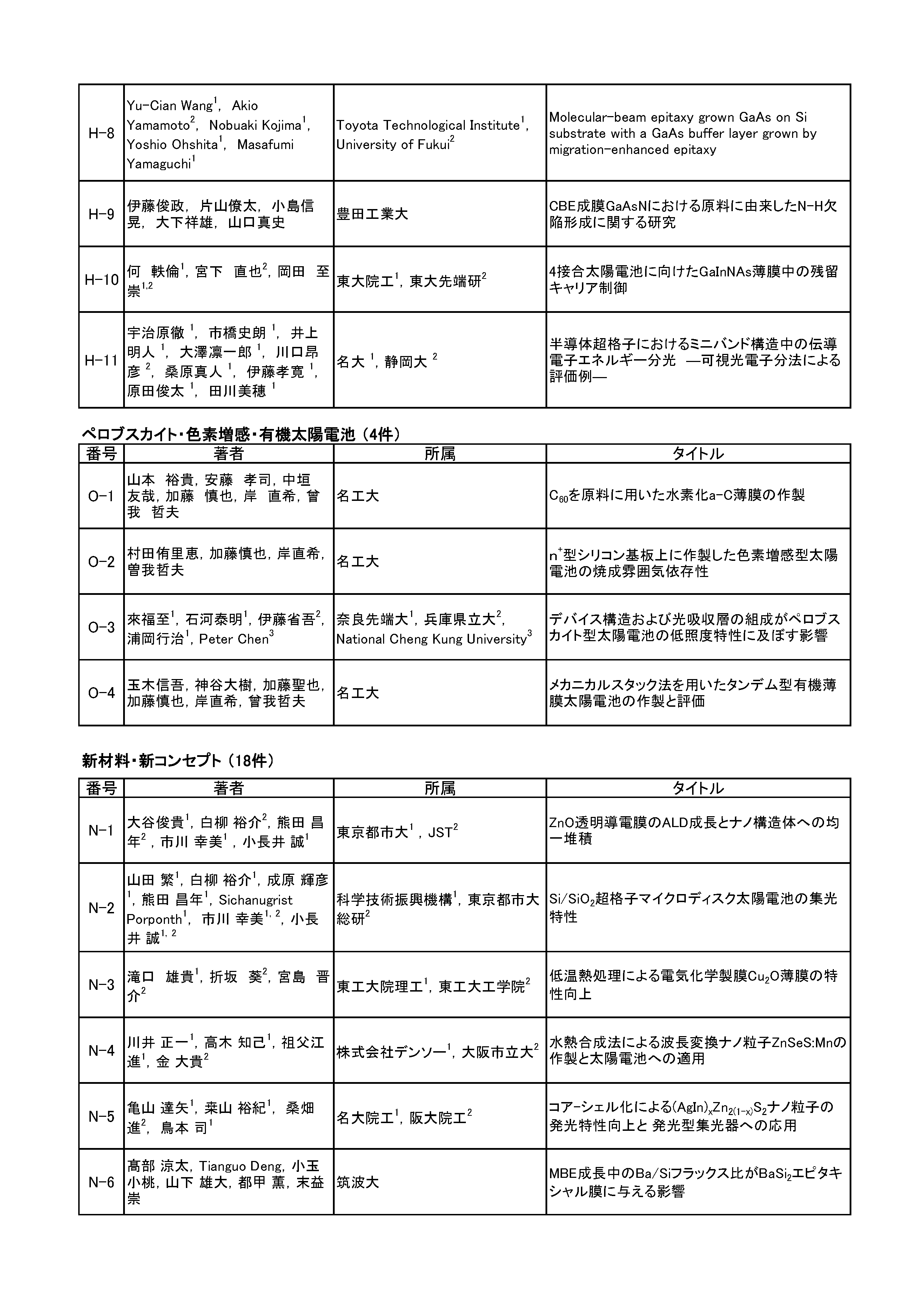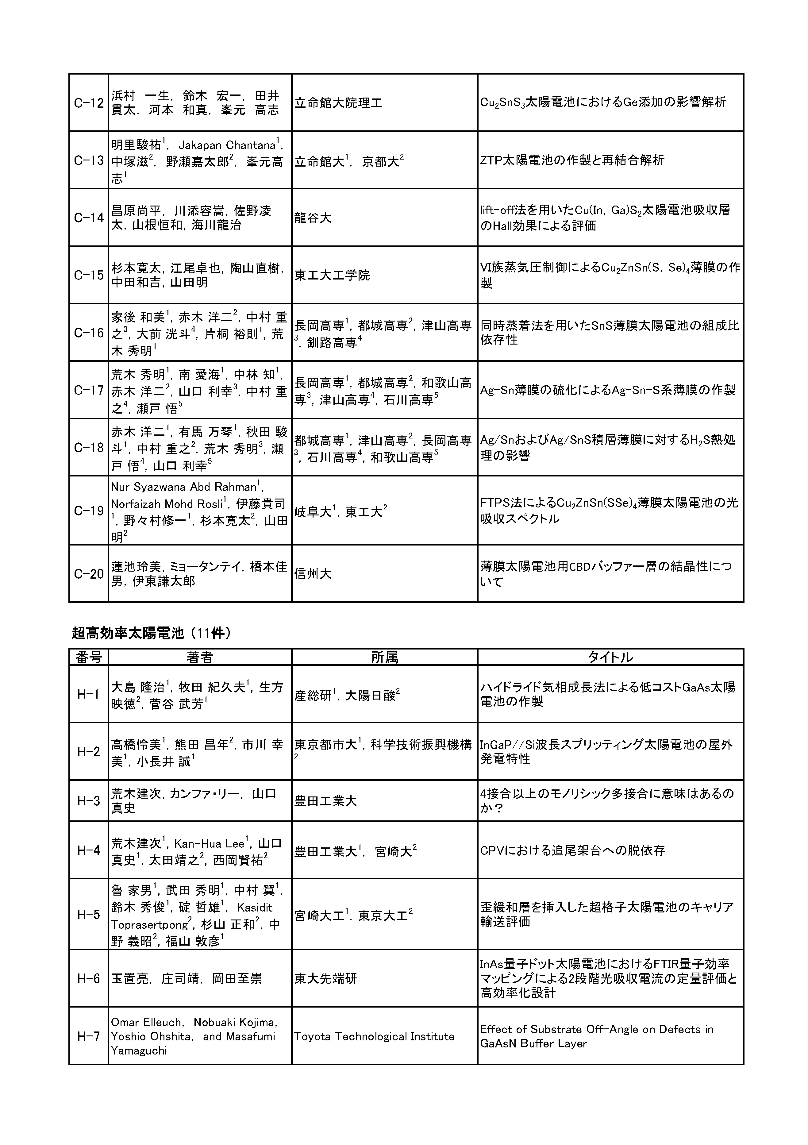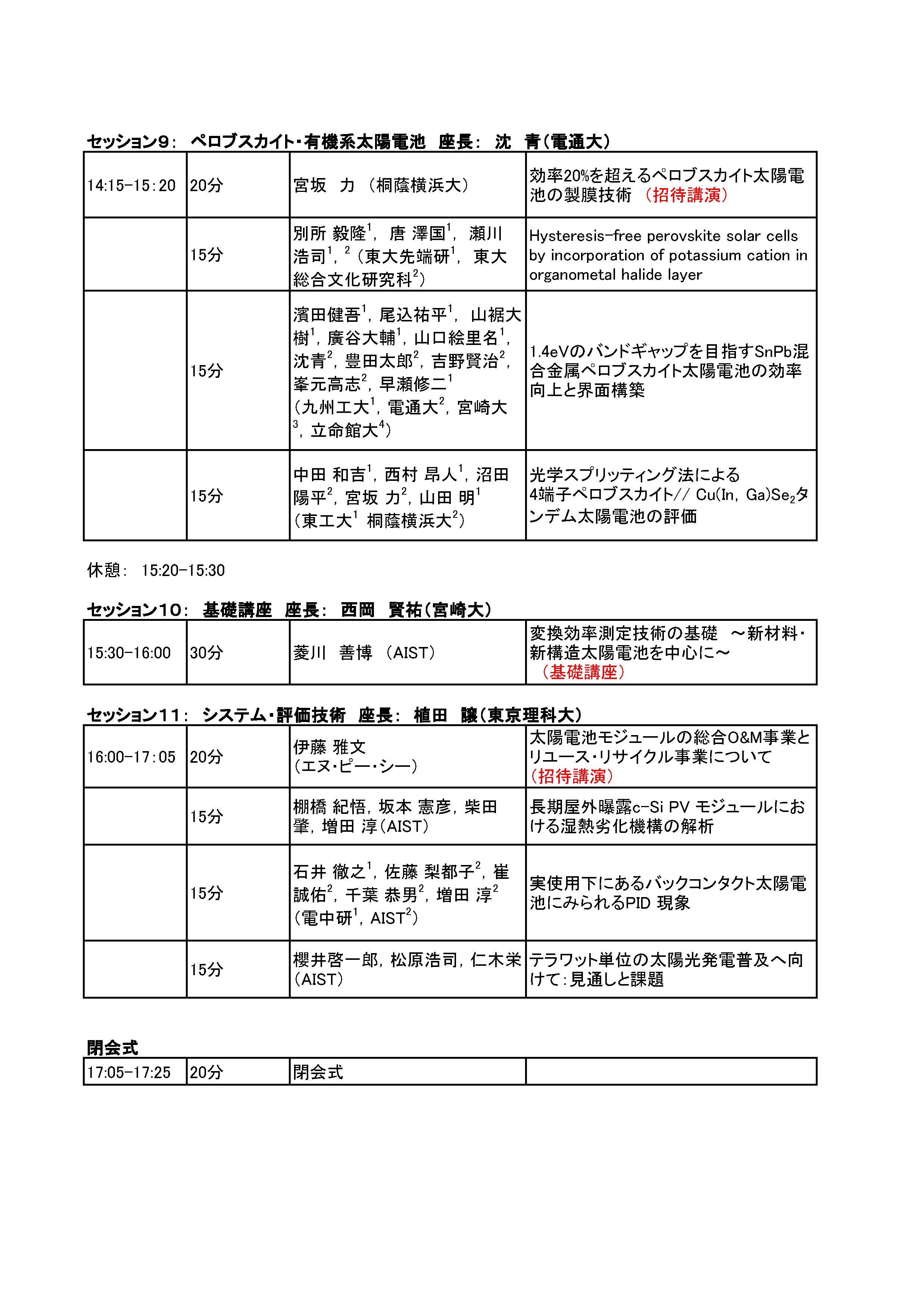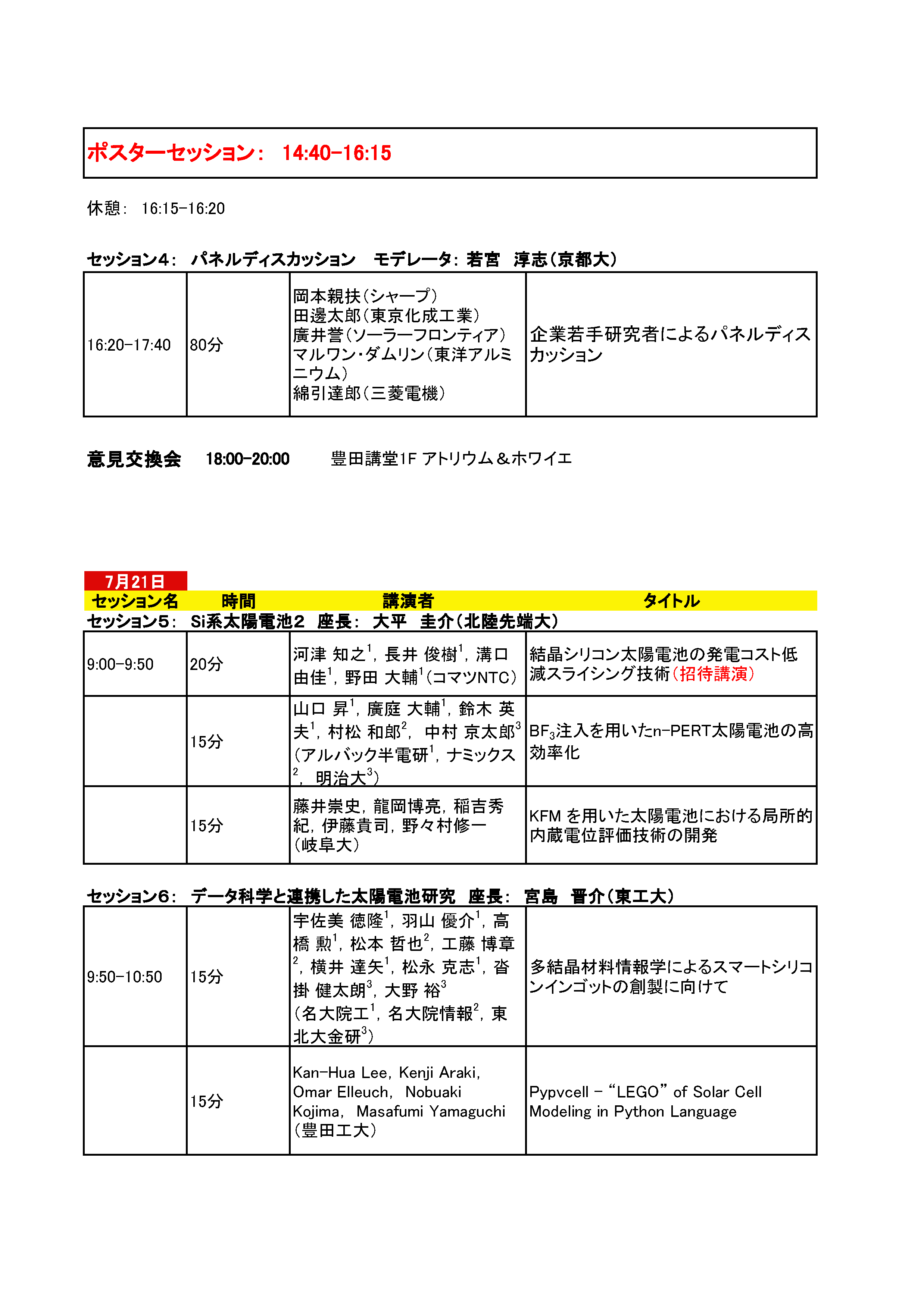 岡本 親扶(シャープ(株)) 田邊 太郎(東京化成工業(株)) 廣井 誉(ソーラーフロンティア(株)) マルワン・ダムリン(東洋アルミニウム(株)) 綿引 達郎(三菱電機(株))