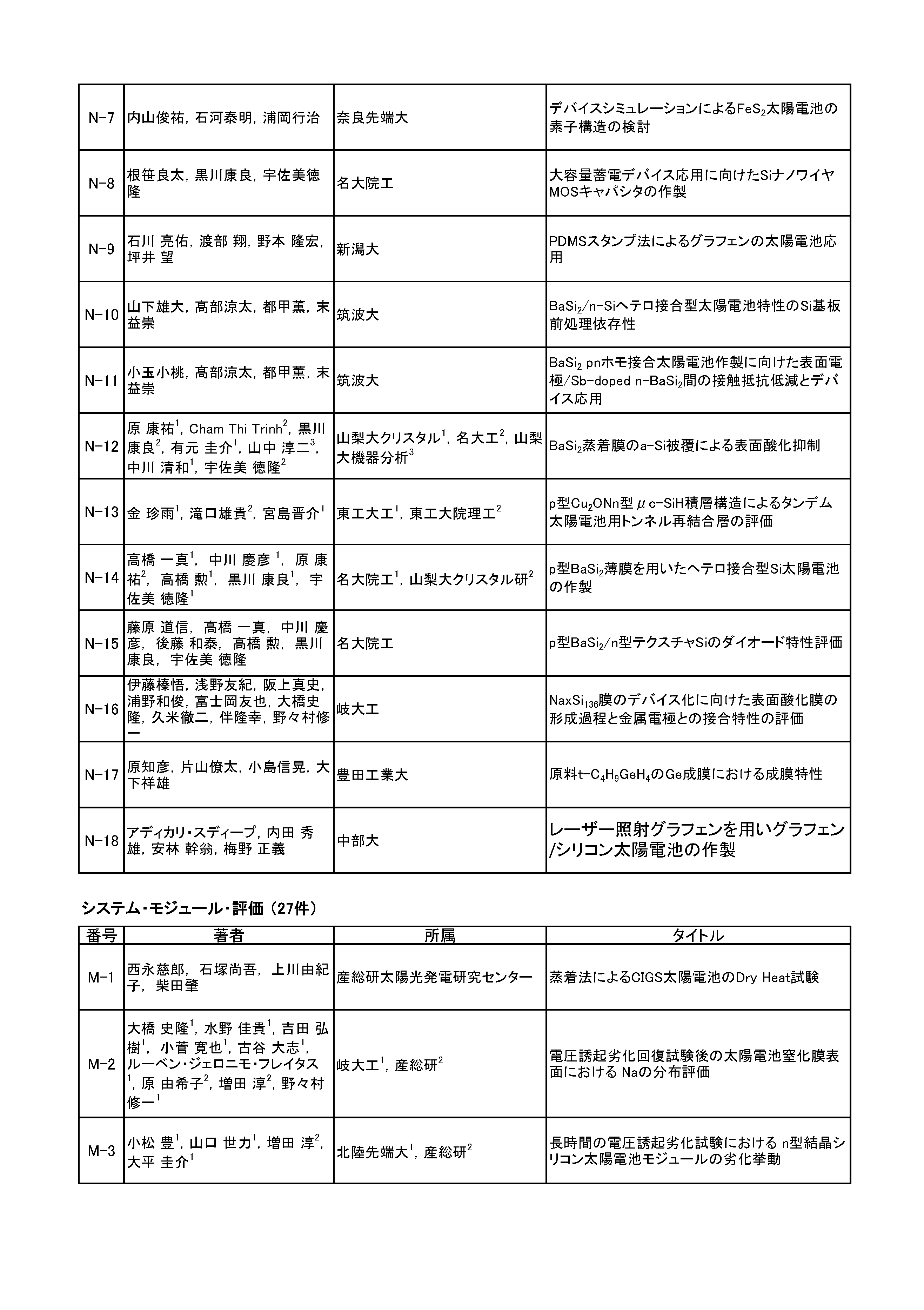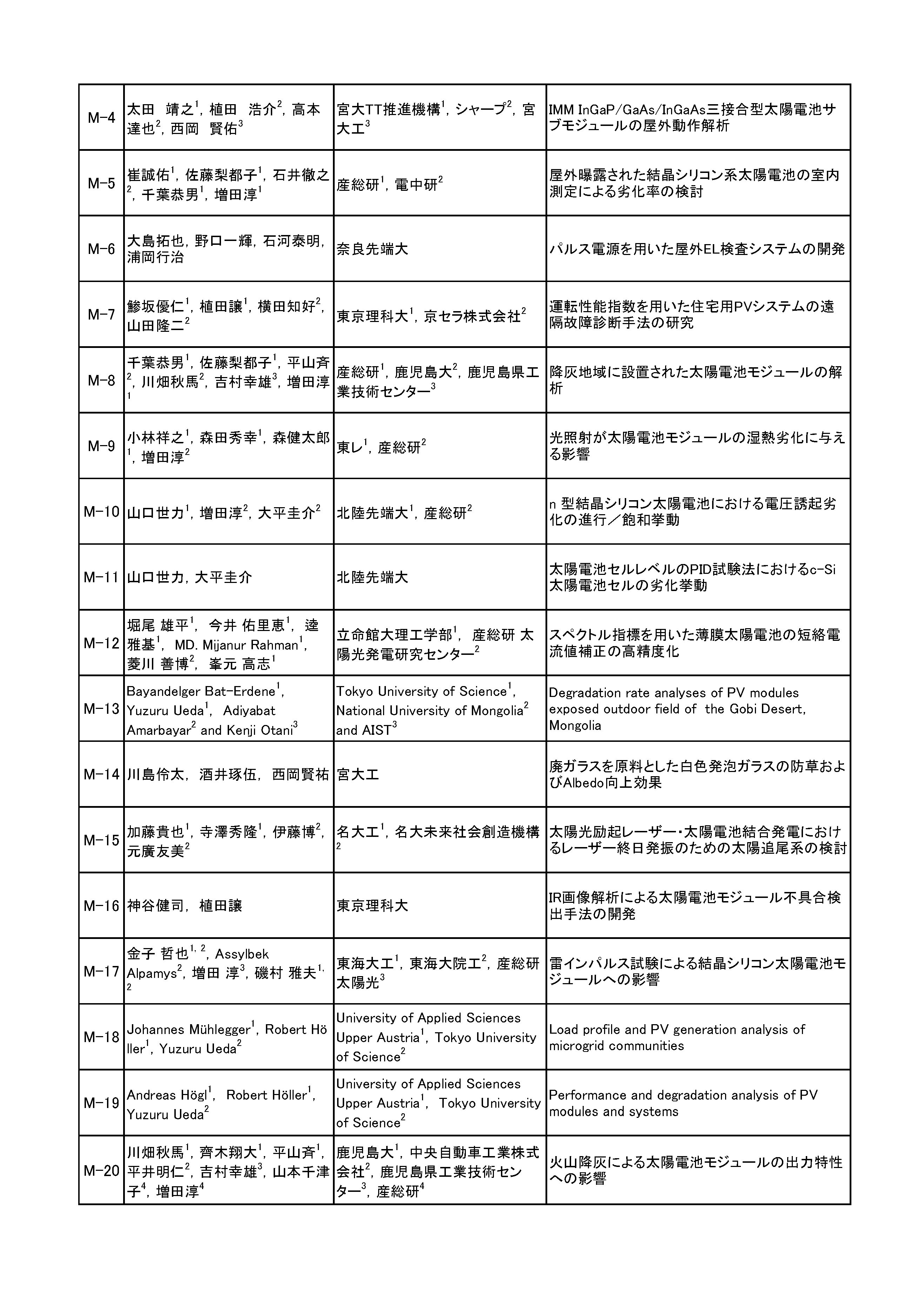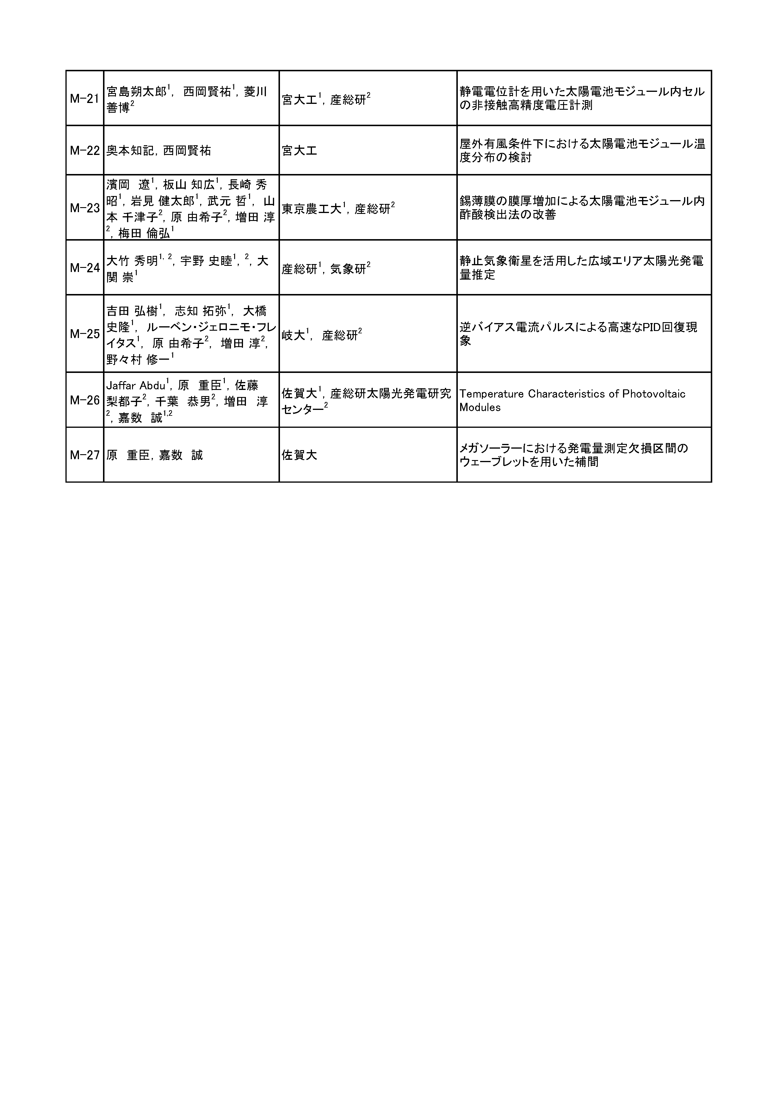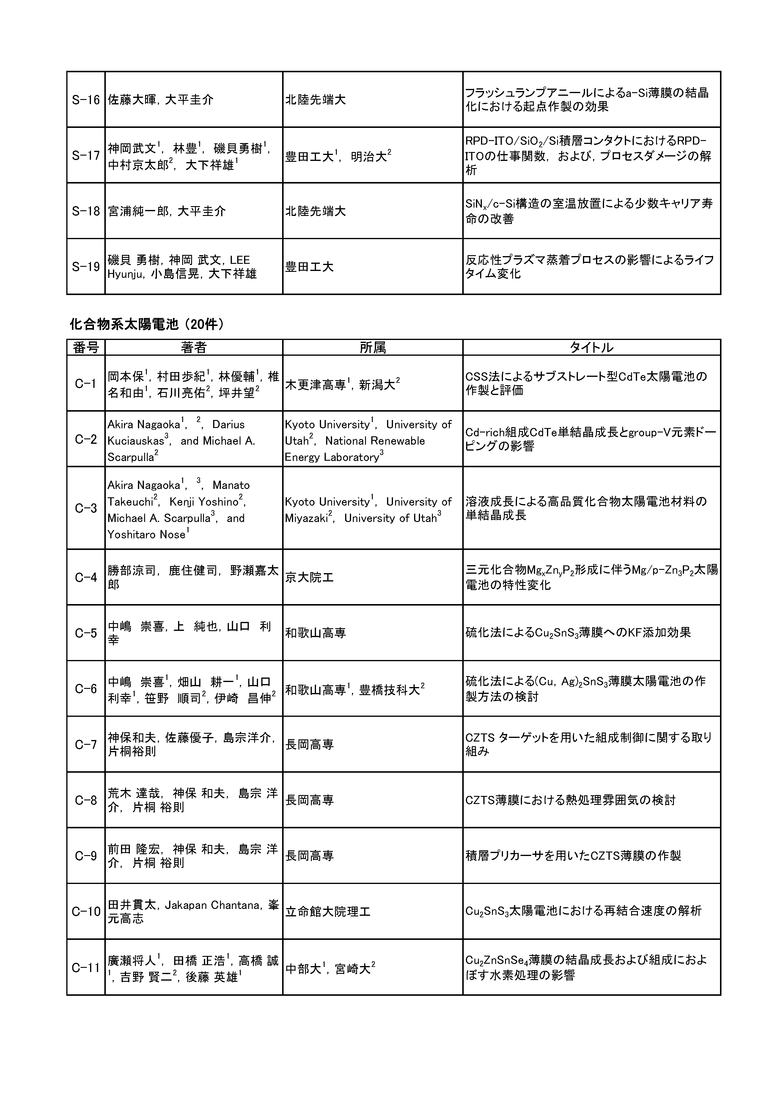 岡本 親扶(シャープ(株)) 田邊 太郎(東京化成工業(株)) 廣井 誉(ソーラーフロンティア(株)) マルワン・ダムリン(東洋アルミニウム(株)) 綿引 達郎(三菱電機(株))