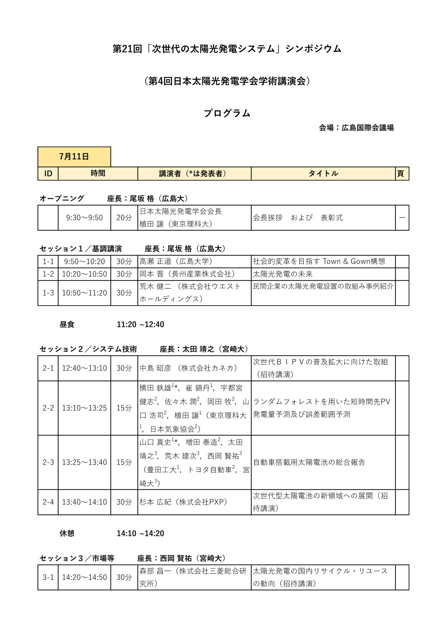 第21回「次世代の太陽光発電システム」シンポジウム